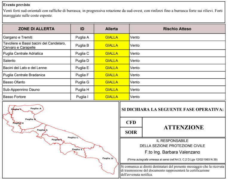 Descrizione Venti forti sud-orientali con raffiche di burrasca, in progressiva rotazione da sud-ovest, con rinforzi fino a burrasca forte sui rilievi. Forti mareggiate sulle coste esposte.