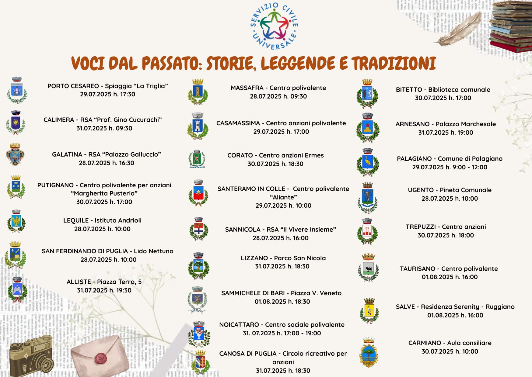 Il Comune di Corato annuncia la pubblicazione del nuovo dépliant informativo relativo al Servizio Civile Universale 2025 e invita tutti i giovani interessati a partecipare all’Infoday, che si terrà lunedì 3 febbraio 2025 alle ore 18:00, presso la Sala Verde del Palazzo di Città.