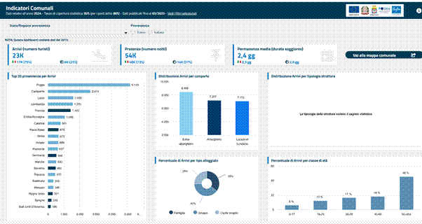 Le strutture di piccole e medie dimensioni (con 21–50 posti letto) rappresentano la fascia più numerosa, segno di un’accoglienza diffusa e sostenibile.